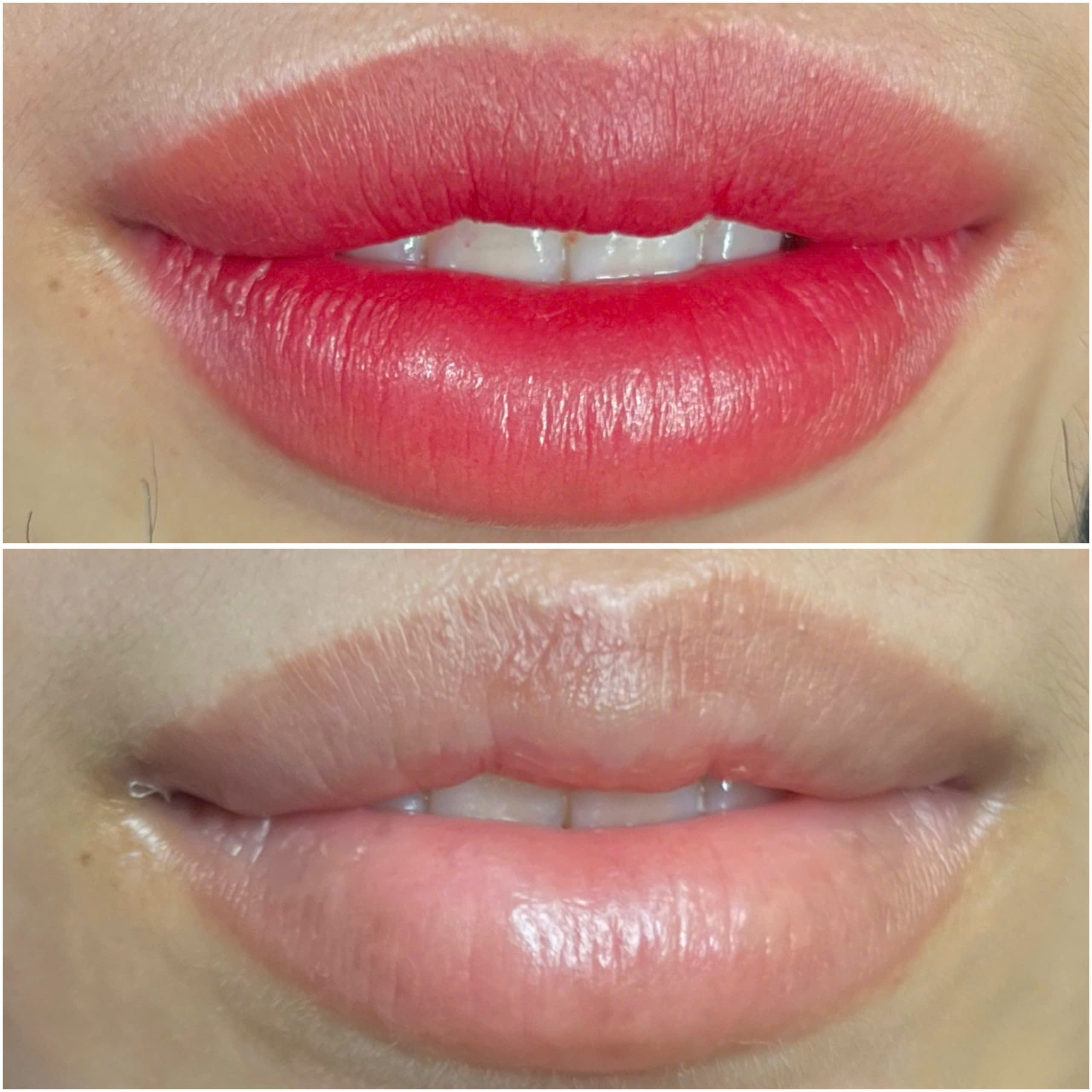 - Tạo nền môi hồng hào, đều màu tự nhiên: Sau khử thâm, nền môi hồng tự nhiên được tạo hài hòa với tone da và tình trạng môi, cho màu môi hồng hào như môi thật, không bệt, không quá đậm, giữ màu ổn định, hạn chế trổ xanh – trổ tím.