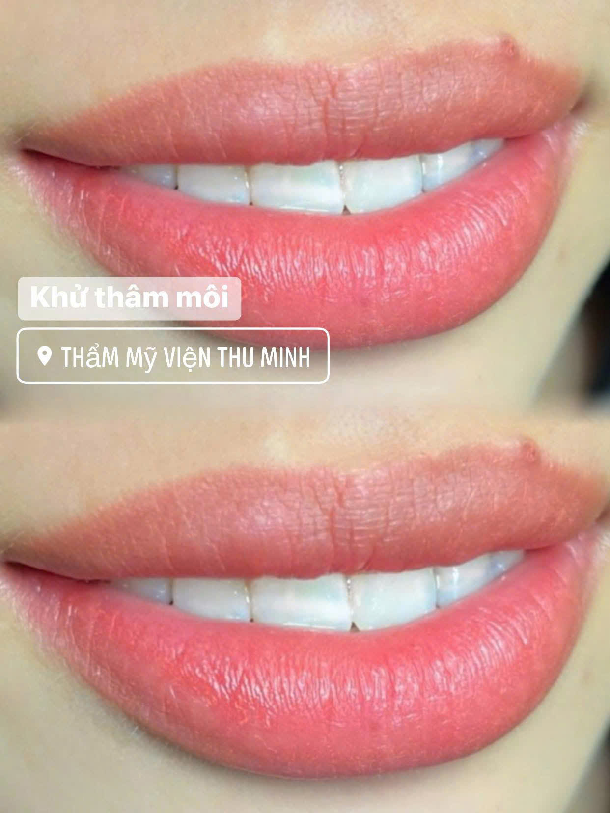 Khác với phun môi tạo màu thông thường, khử thâm tập trung xử lý nền môi tối màu trước, sau đó mới phủ màu phù hợp với tone da và cơ địa. Tại Thẩm mỹ viện Thu Minh, công nghệ hiện đại cùng mực hữu cơ an toàn giúp môi nhanh hồi phục và lên màu tự nhiên.